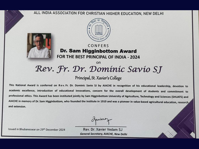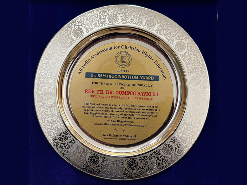 Rev.Fr. Dominic Savio was awarded the Xavier’s Award for Excellence in Imparting Education by St. Xavier's College (Calcutta) Alumni Association (SXCAA) on 5th September 2023.