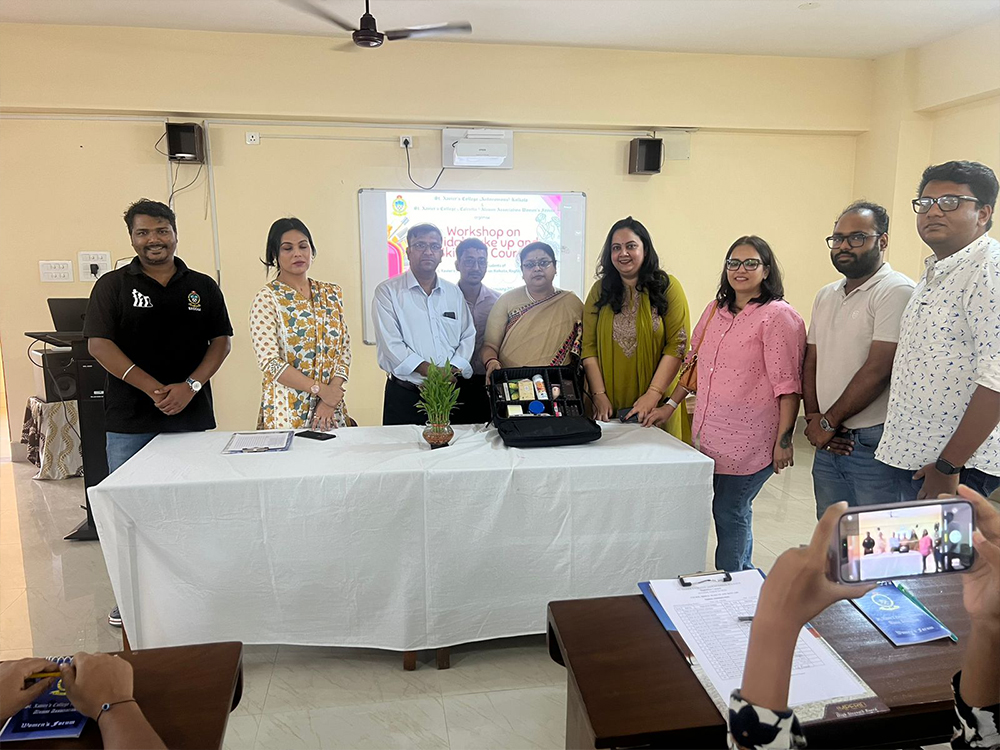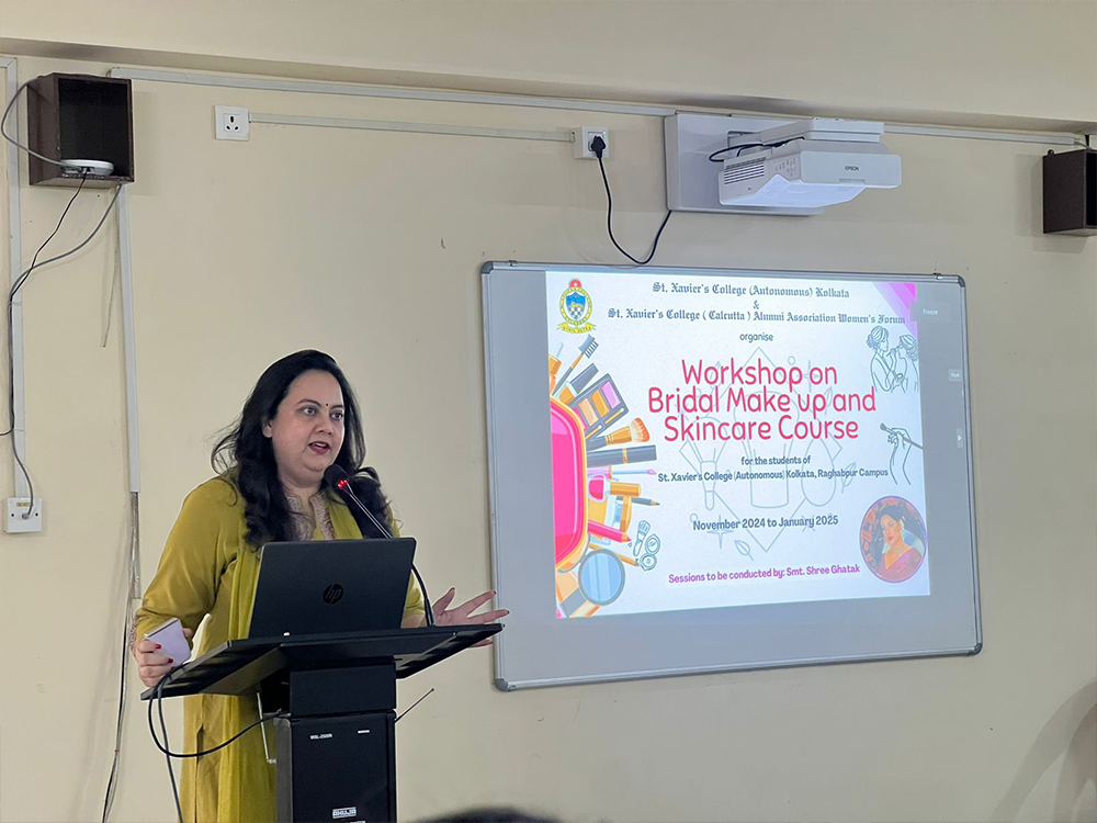 Under the vision of Rev. Dr. Dominic Savio, SJ, Principal, St. Xavier's College (Autonomous) Kolkata and President, St. Xavier's College (Calcutta) Alumni Association and the guidance of Mr. Firdausul Hasan, Hony. Secretary, SXCCAA the SXCCAA Women's Forum launched a 10 days Bridal Makeup and Skin Care Course for the selected Girl students of St. Xavier's College Raghabpur Campus today on 11th November, 2024. The members of the Women's Forum and the Members of the Association visited the rural campus today for the formal inauguration of the Workshop. Rev. Fr. Johnson Padiyara, SJ, Vice Principal, St. Xavier's College (Autonomous) Raghabpur Campus graced the occasion and motivated the students and on behalf of Father Principal, he applauded this initiative of the Women's Forum of SXCCAA. The students will be trained by Mrs. Shree Ghatak during this course spanning from November 2024 to January 2025 and upon completion, the students will be given certificates and a formal valedictory will be held. SXCCAA Women's Forum is committed to organise such more initiatives in the forthcoming days for the development of the students of the rural campus of their Alma Mater.