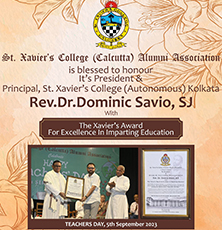 Rev. Dr. Dominic Savio, SJ is the Principal of St. Xavier's College (Autonomous), Kolkata and the President of St. Xavier's College (Calcutta) Alumni Association. Father is also the former Rector of St. Xavier’s College and School, having assumed the office from December 2013 to January 2020. Also, Father has worked as Former Vice Principal and Former Deputy Principal of St. Xavier’s College before taking over as the Principal.